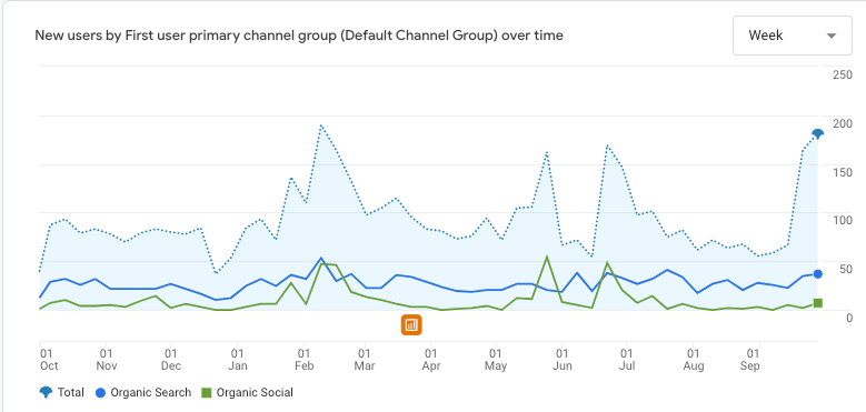 To get to the bottom of declining traffic, you can use a variety of analytics tools. Google Analytics 4 (GA4), for instance, will allow you track inbound traffic from different sources over time. This can be calculated at the aggregate level of organic search, direct clicks etc, or at the granular level of individual pages and platforms.