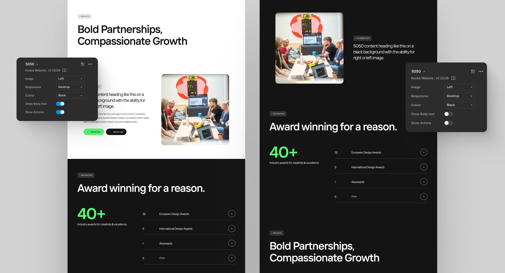 At Kooba, we believe that our clients understand their business better than anyone else. A modular design system allows them to take the layout of their site into their own hands and find solutions that nobody else could think of.